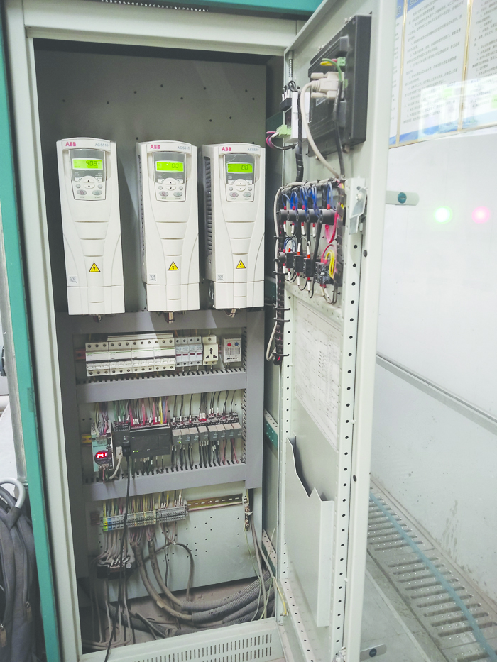 變頻控制柜:包含斷路器、abb變頻器、接觸器、中間繼電器、PLC 等部件。其作用是對(duì)水泵機(jī)組進(jìn)行控制和調(diào)節(jié),根據(jù)壓力傳感器反饋的信號(hào),通過(guò)變頻器改變水泵電機(jī)的電源頻率,從而調(diào)整水泵的轉(zhuǎn)速,實(shí)現(xiàn)恒壓供水。